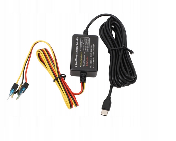 Głównym zadaniem adaptera zasilania jest przetworzenie napięcia 12-24V do 5V oraz zabezpieczenie akumulatora pojazdu przed całkowitym rozładowaniem uniemożliwiającym rozruch. Jeśli poziom naładowania akumulatora spadnie do określonego poziomu, adapter automatycznie wyłączy rejestrator jazdy.