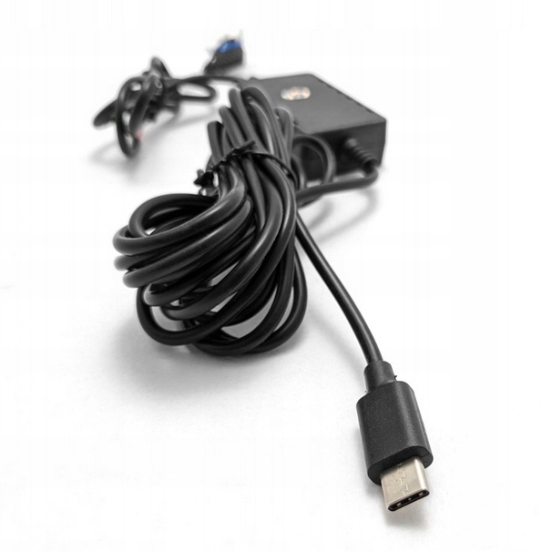 Na wyjściu adaptera znajduje się przewód zasilający o długości ok. 2,5 metrów, zakończony kątową wtyczką USB typ C. Złącze typu C zapewnia bezpieczne i stabilne połączenie między zestawem przewodów a detektorem radaru mocy GPS w kamerze samochodowej i wieloma innymi urządzeniami typu c.