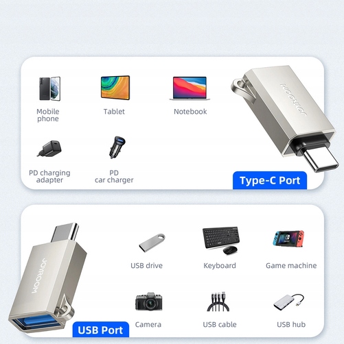 Adapter Joyroom S-H151 obsługuje technologię OTG (On-The-Go), co oznacza, że możesz szybko i łatwo podłączyć różne urządzenia peryferyjne, takie jak pendrive’y, klawiatury czy myszki, bez potrzeby użycia dodatkowych sterowników. To doskonałe rozwiązanie dla osób, które potrzebują zwiększyć funkcjonalność swojego telefonu lub tabletu, zwłaszcza podczas podróży lub pracy w terenie.