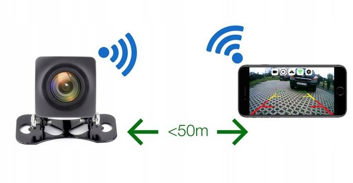 Ta wytrzymała i wodoszczelna kamera działa bezprzewodowo, umożliwiając przesyłanie obrazu na ekran smartfona z systemem iOS lub Android. Co ważne, kamera może być używana w odległości do 50 metrów od pojazdu i działa przy napięciu 12V.