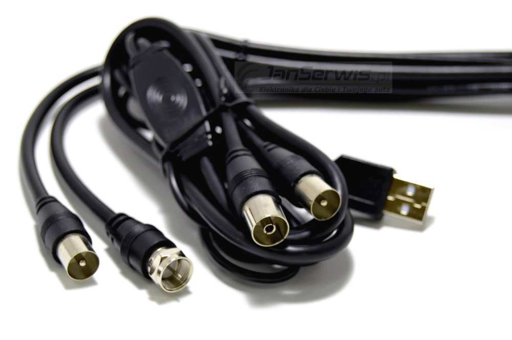 Do zestawu dołączony jest zestaw okablowania który umożliwia podłączenie anteny do TV i zasilania przez USB
