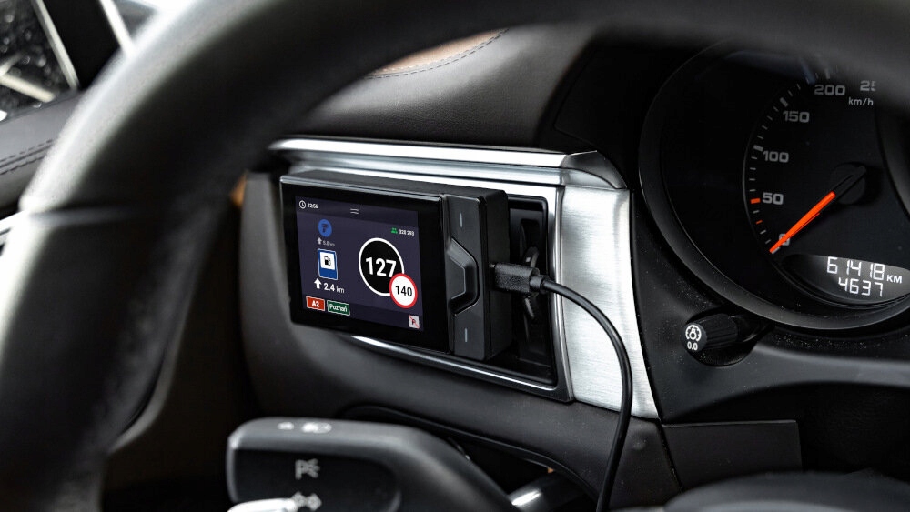 Tylna część obudowy została pokryta delikatną fakturą, która nadaje urządzeniu oryginalny, designerski wygląd. Jej prosty, geometryczny kształt i niewielki rozmiar powodują, że Yanosik RS doskonale wkomponuje się we wnętrze Twojego samochodu, niezależnie czy masz skórzaną tapicerkę czy fotele pokrywa alcantara.