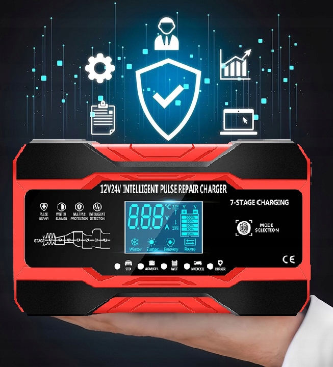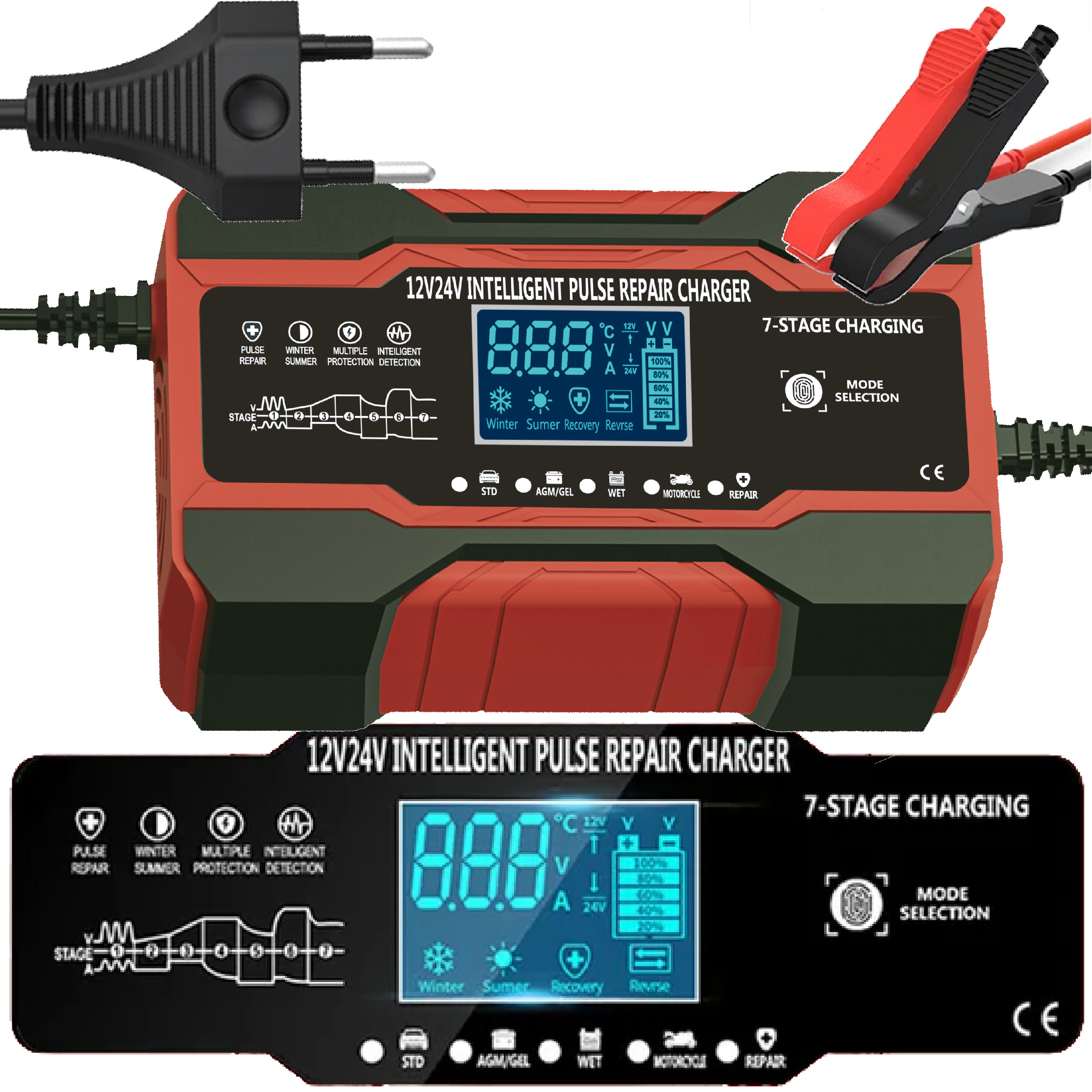 ✅ SZYBKIE ŁADOWANIE ✅NAPRAWIANIE AKUMULATORÓW 12V i 24V ✅PROSTY W UŻYCIU ✅WYŚWIETLACZ LCD ✅KOMPAKTOWY