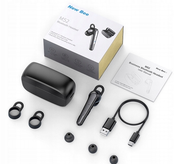 BEZPRZEWODOWA SŁUCHAWKA NEW BEE M52 ENC LEKKA 180 DNI CZUWANIA ETUI 500mAh