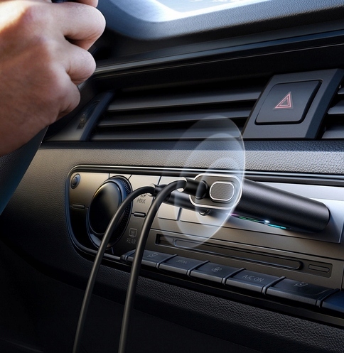 Rewolucyjny samochodowy bezprzewodowy odbiornik Bluetooth w eleganckim kolorze szarym. Ten innowacyjny gadżet zamienia urządzenia przewodowe w bezprzewodowe, dodając funkcję bluetooth do systemu stereo w domu, głośników czy audio w samochodzie. Z najnowszą technologią Bluetooth 5.3, niskim opóźnieniem, stabilnym zasięgiem 10m i funkcją super BASS. Zapewnij niezrównane wrażenia dźwiękowe podczas nawigacji, słuchania muzyki i grania w gry jednocześnie.