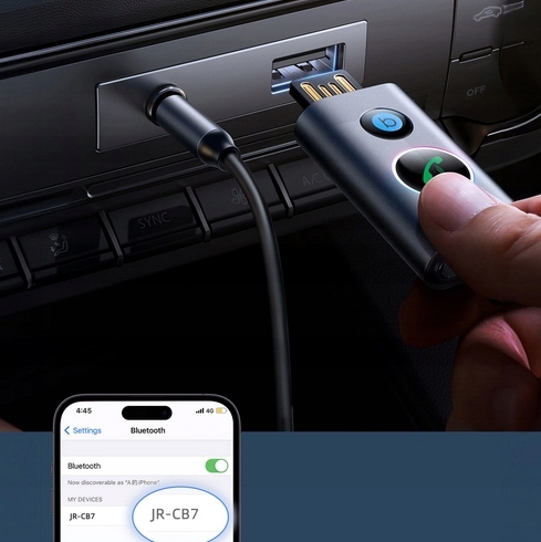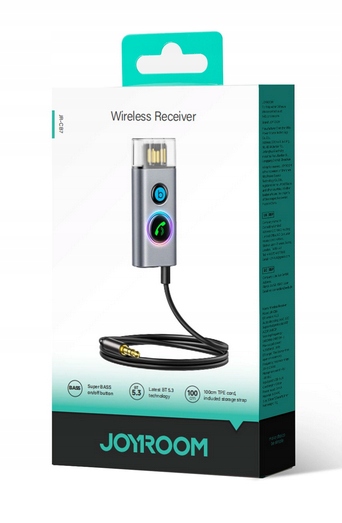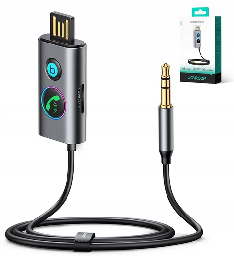 BEZPRZEWODOWY SAMOCHODOWY ODBIORNIK BLUETOOTH V5.3 PRZEWÓD 1M JR-CB7 SZARY