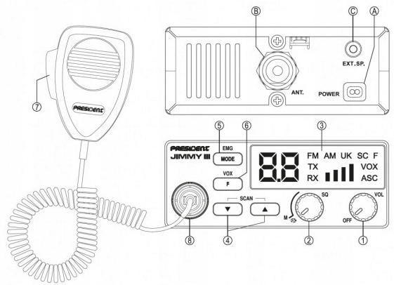 RADIO CB PRESIDENT JIMMY III AM/FM + ZALUTOWANY WTYK