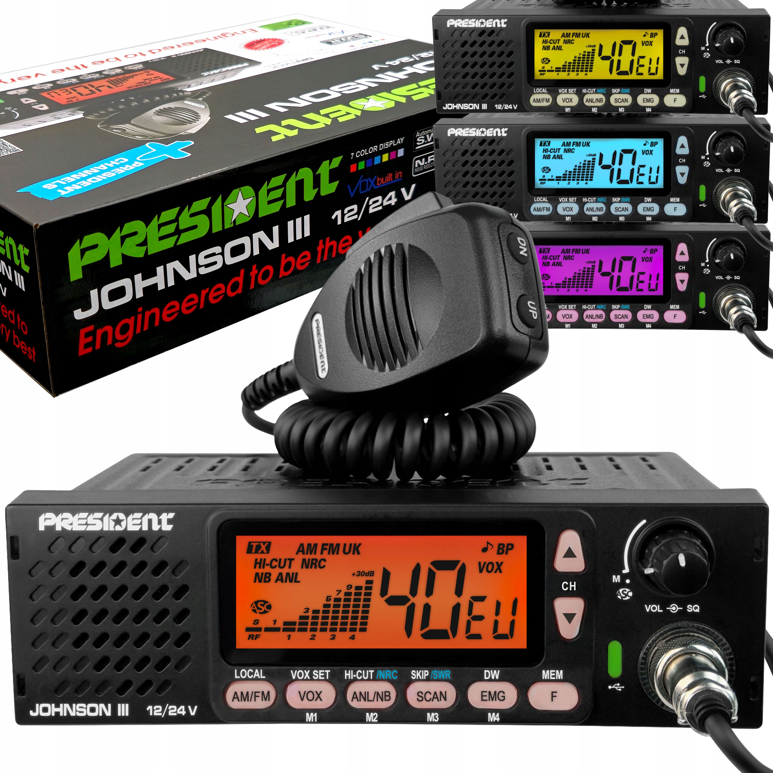 Cb radio President Johnson III ASC VOX to jeden z najlepszych dostępnych obecnie na rynku przewoźnych radiotelefonów cb pracujących z emisjami AM/FM. Produkowany przez renomowaną firmę President. Stosunkowo łatwy w obsłudze przy jednocześnie dużym zaawansowaniu technologicznym. Zbudowany jest z myślą o bardzo wymagających użytkownikach ceniących sobie przede wszystkim jakość i trwałość