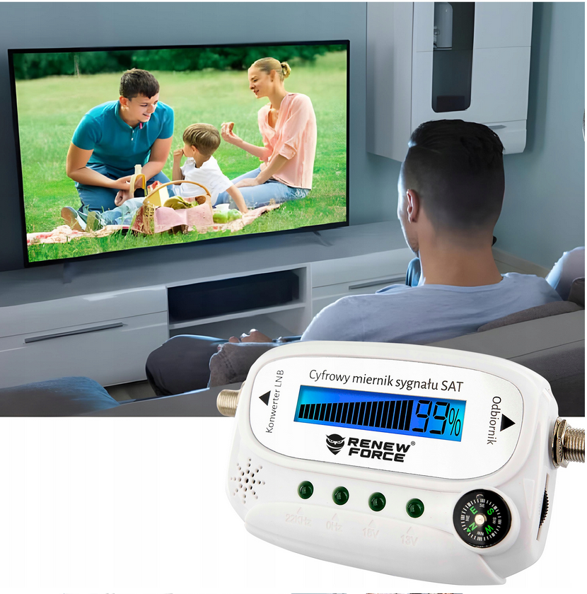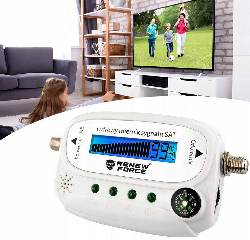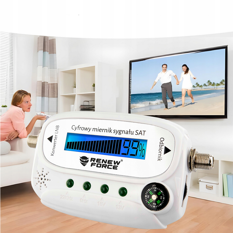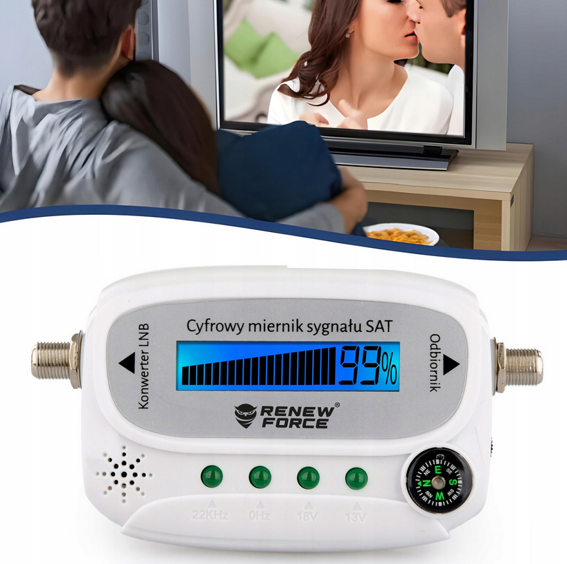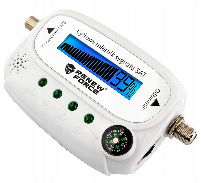 Bardzo istotny jest sposób wyszukiwania sygnału SAT. Wyświetlany jest na elektronicznym, podświetlanym wyświetlaczy LCD, dzięki czemu szybko można zauważyć zmiany w nasileniu odbioru.