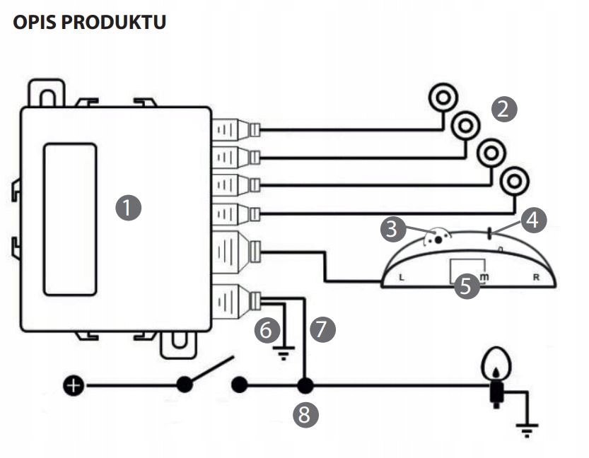• Długość przewodów: Czujniki – 2,5 m; LCD – 5,9 m; zasilanie – 50 cm