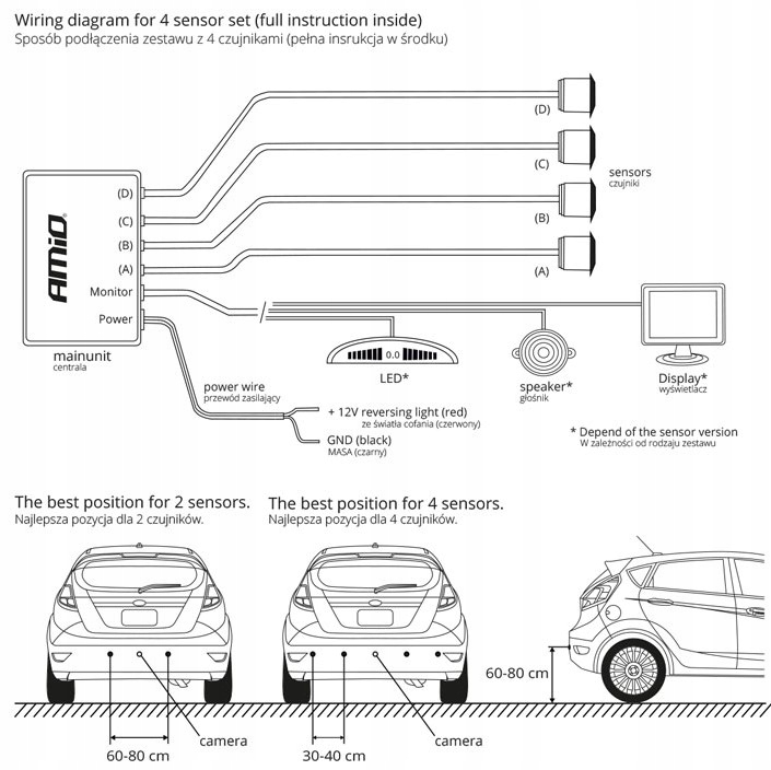 CZUJNIKI PARKOWANIA COFANIA LED 4 SENSORY BIAŁE AMIO-01566
