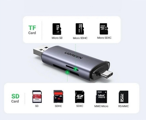 CZYTNIK KART SD / MICRO SD NA USB-A 3.0 / USB-C 3.0 SZARY UGREEN CM185