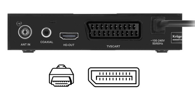 Tuner Kruger&Matz KM0550D wyposażony został w gniazdo HDMI, które umożliwia podłączenie do wszystkich nowszych modeli telewizorów i oglądanie programów w jakości FullHD. Jeśli jednak posiadasz starszy model TV, bez problemu podłączysz tuner za pomocą złącza SCART, potocznie zwanego eurozłączem.