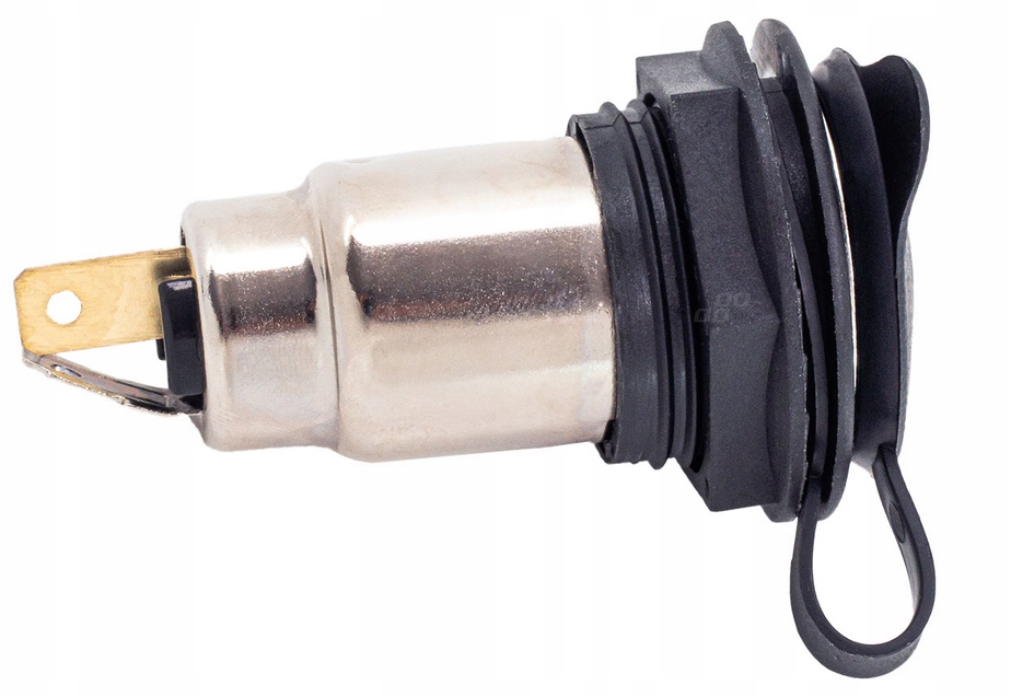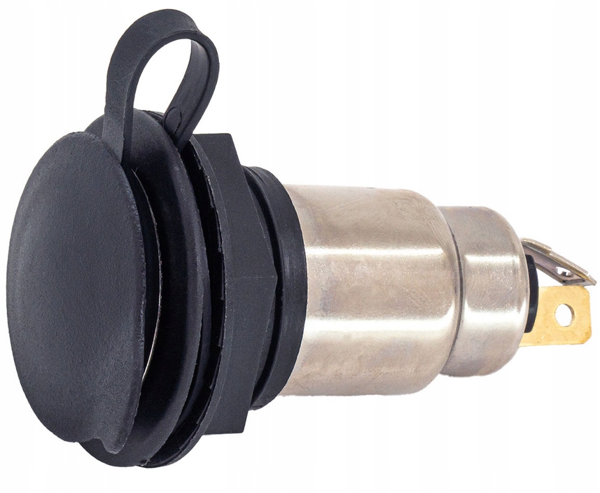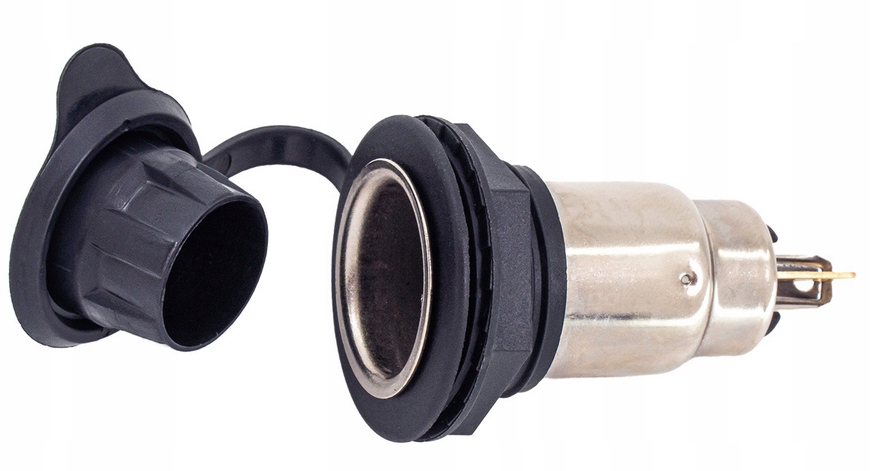Solidne gniazdo zasilania dodatkowego, przeznaczone do montażu w pojazdach osobowych, ciężarowych oraz maszynach. Wyposażone w klapkę ochronną zabezpieczającą przed zabrudzeniami i wilgocią, co gwarantuje niezawodne działanie nawet w trudnych warunkach eksploatacyjnych.