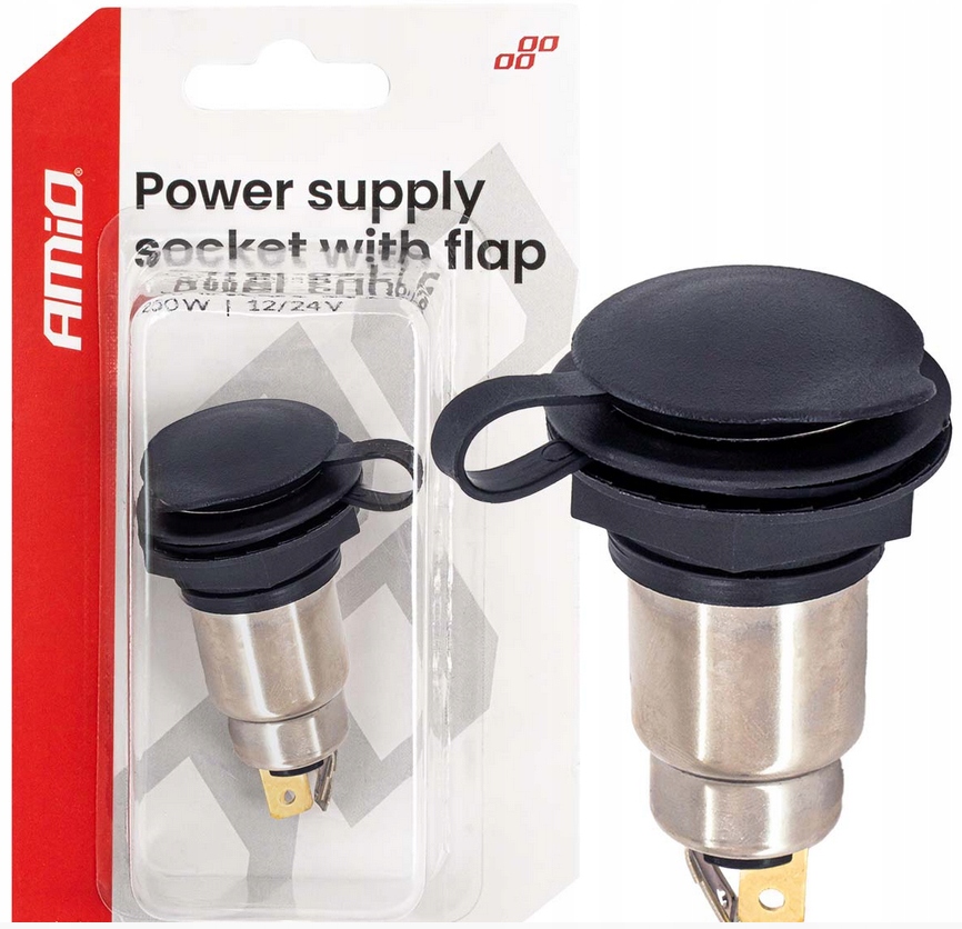 DODATKOWE GNIAZDO ZASILANIA Z KLAPKĄ SKRĘCANE 250W 12V 24V AMIO-04462