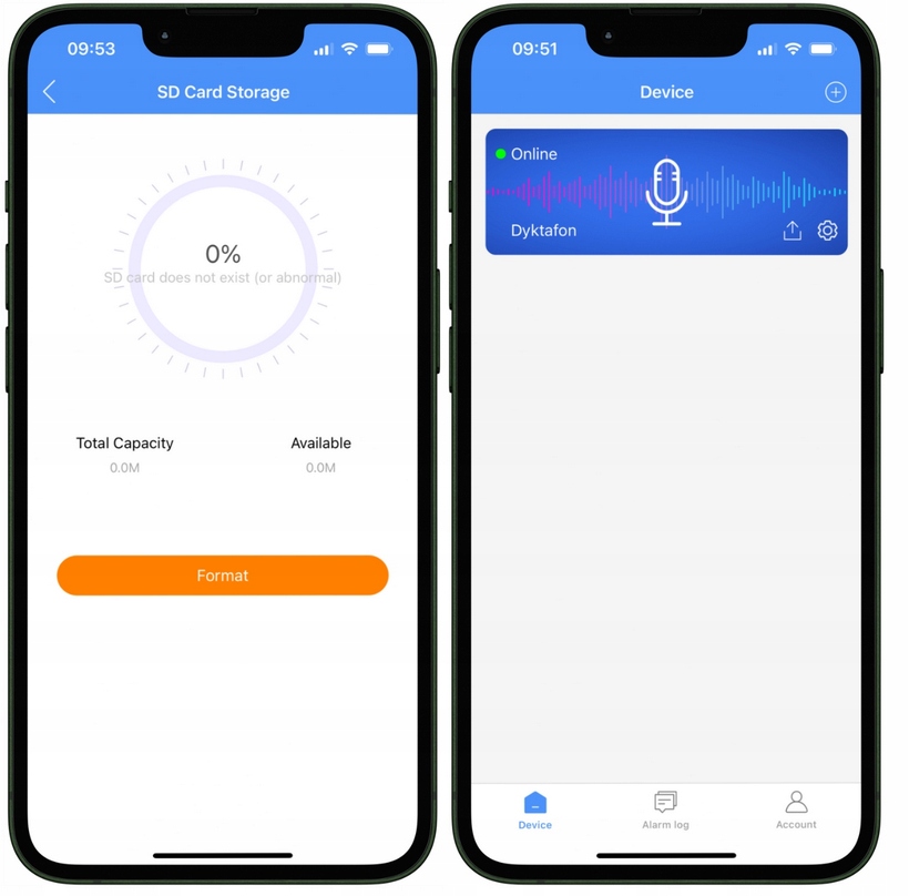 - Powiadomienia push – Otrzymuj natychmiastowe alerty o wykrytym dźwięku, zdarzeniach alarmowych oraz niskim poziomie baterii.