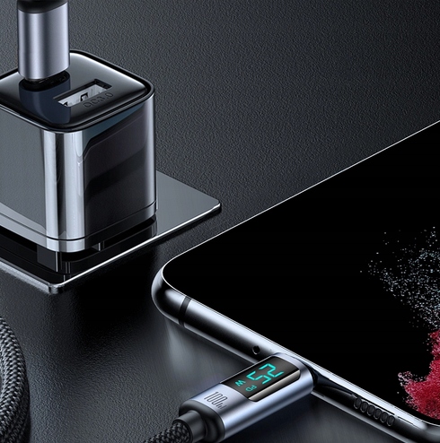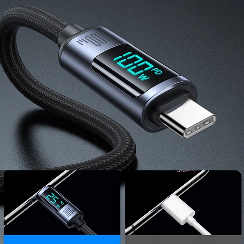 - Z łatwością kontrolujesz proces ładowania. Kabel ma wbudowany cyfrowy wyświetlacz LED.