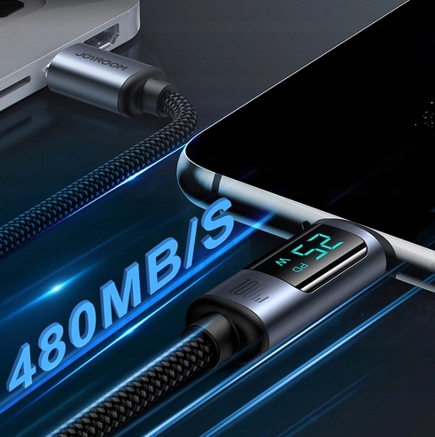 KABEL JOYROOM PRISM SERIES A16 2XUSB-C TYP-C 100W Z WYŚWIETLACZEM LED 1.2M