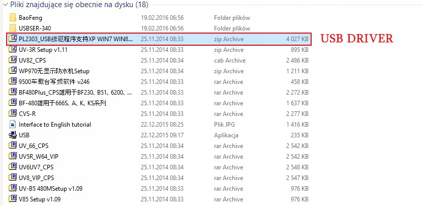 - Kabel do programowania Baofeng wykorzystuje układ PL2303 (kompatybilny z systemami Mac, Windows XP, Windows 7, Windows 8, Windows 8.1), Windows 10, działa również dobrze z oprogramowaniem chirp.
