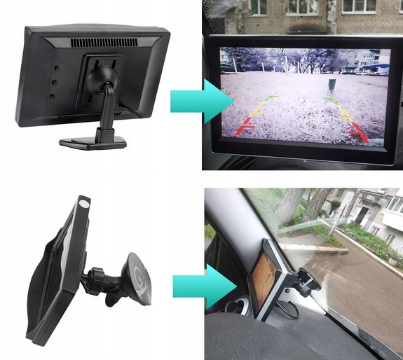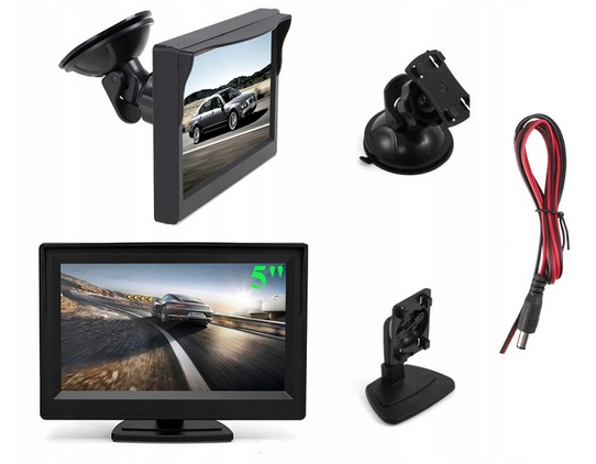 Monitor o przekątnej ekranu 5 cali przeznaczony do podłączenia kamer cofania i innych urządzeń ze złączem RCA cinch. Wysoka rozdzielczość wyświetlacza, zapewnia wyrazisty i bardzo dokładny obraz. Regulowany uchwyt montażowy pozwala na instalacje w każdym pojeździe i w każdej pozycji – na desce rozdzielczej czy podsufitce, za pomocą dołączonego uchwytu z przyssawką do szyby ale także możemy nie używać uchwytu i sam wyświetlacz umieścić np. w konsoli środkowej – wg własnego uznania.