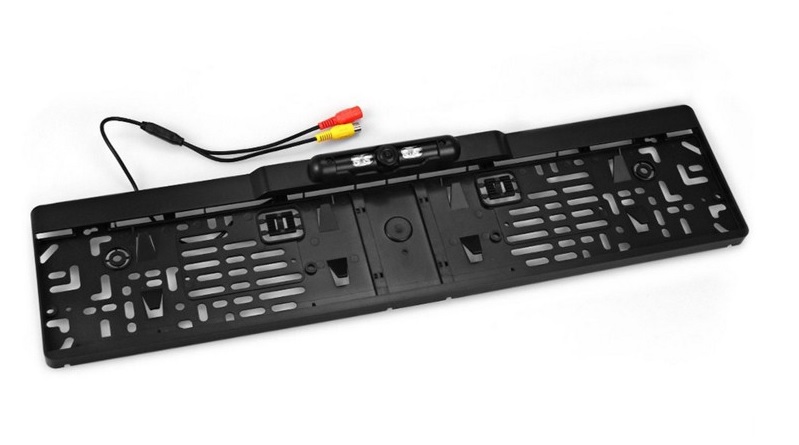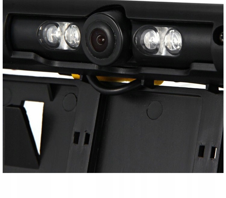 Uniwersalna kamera cofania wmontowana w ramkę tablicy rejestracyjnej. Pasuje do każdego modelu samochodu osobowego, dostawczego oraz TIR. Urządzenie podłącza się do dowolnego monitora z wejściem video. Uruchamianie kamery następuje w momencie załączenia biegu wstecznego. Obiektyw kamery regulowany w pionie.