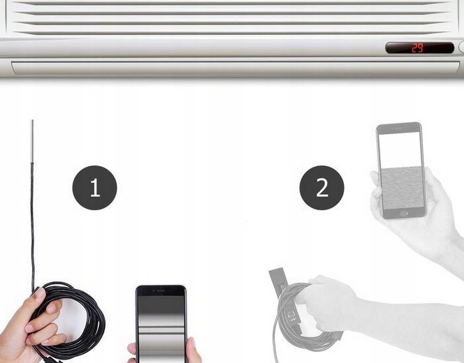 - Kamera sprawdzi się w każdych warunkach i będzie najwygodniejszą formą kamery endoskopowej dzięki wykorzystaniu naszego telefonu jako ekranu!