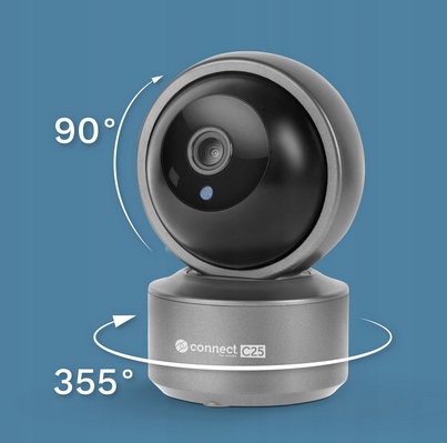 Obrotowa kamera WiFi Connect C25 posiada szerokie pole widzenia. W dedykowanej aplikacji możesz sterować urządzeniem w poziomie pod kątem 355° oraz w pionie pod kątem 90°. Taka elastyczność pozwala na niemal pełne pokrycie monitorowanego obszaru, dzięki czemu masz pewność wszechstronnej ochrony i nadzoru.