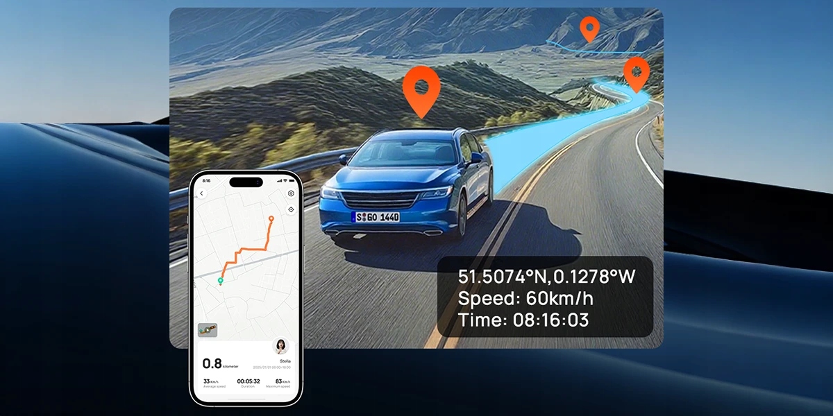 Wbudowany GPS z 5-mode global positioning system w 70mai T400 rejestruje trasę, prędkość i położenie auta, korzystając z kilku systemów satelitarnych dla lepszej precyzji. Dane są dostępne w aplikacji 70mai, dzięki czemu łatwiej rozliczyć przejazdy służbowe, ocenić styl jazdy lub potwierdzić, gdzie dokładnie doszło do kolizji. To wartościowe narzędzie dla kierowców zawodowych oraz firm dbających o rzetelne raportowanie.