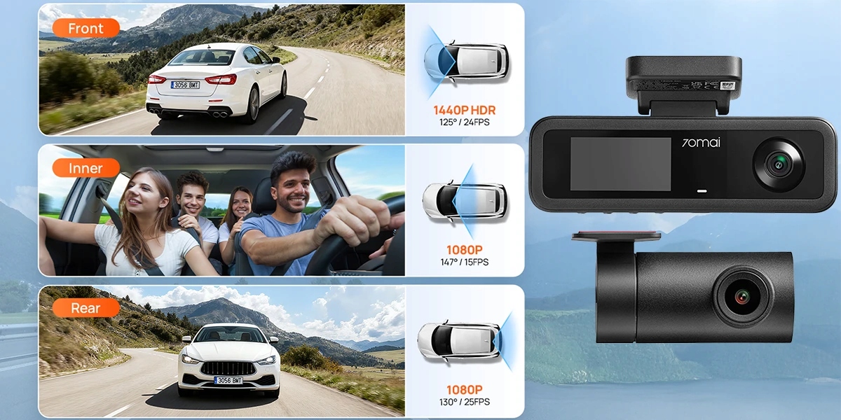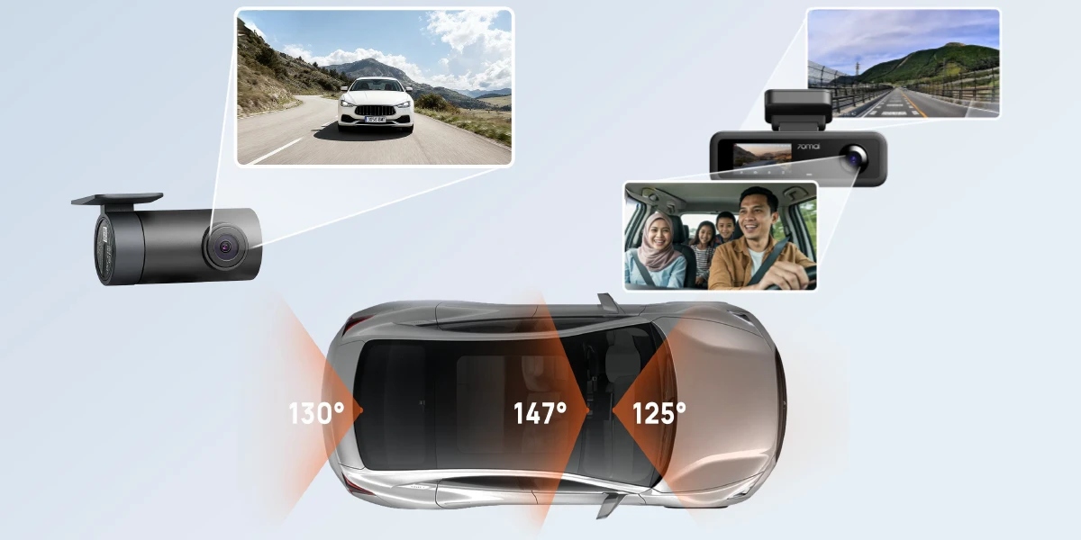 Kamera samochodowa 70mai T400 jednocześnie nagrywa przód, tył i wnętrze pojazdu, tworząc spójny zapis sytuacji wokół auta i minimalizując ryzyko przeoczenia istotnego szczegółu. Szerokie kąty widzenia 125° z przodu, 130° z tyłu i 147° w kabinie skutecznie ograniczają martwe strefy, dzięki czemu możesz lepiej udowodnić przebieg zdarzenia drogowego. To praktyczne rozwiązanie dla kierowców prywatnych, flot firmowych oraz osób zarabiających na przewozie pasażerów.