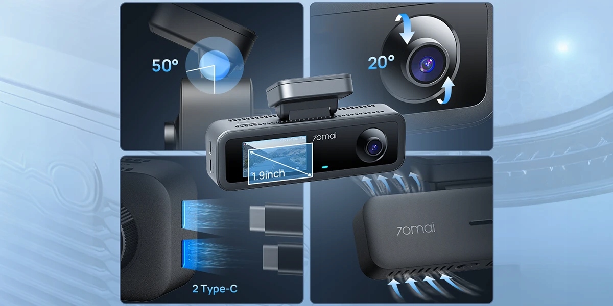 W 70mai T400 przednia i wewnętrzna kamera zostały zintegrowane w jednym, wąskim korpusie, który nie zasłania szyby i nie dominuje w kabinie. Ekran wyświetlający obraz na żywo pozwala szybko sprawdzić, czy wszystko jest poprawnie ustawione i nagrywane, bez konieczności podłączania dodatkowych urządzeń. Prosty montaż i estetyczny wygląd sprawiają, że sprzęt pasuje zarówno do miejskiego hatchbacka, jak i limuzyny z segmentu premium.