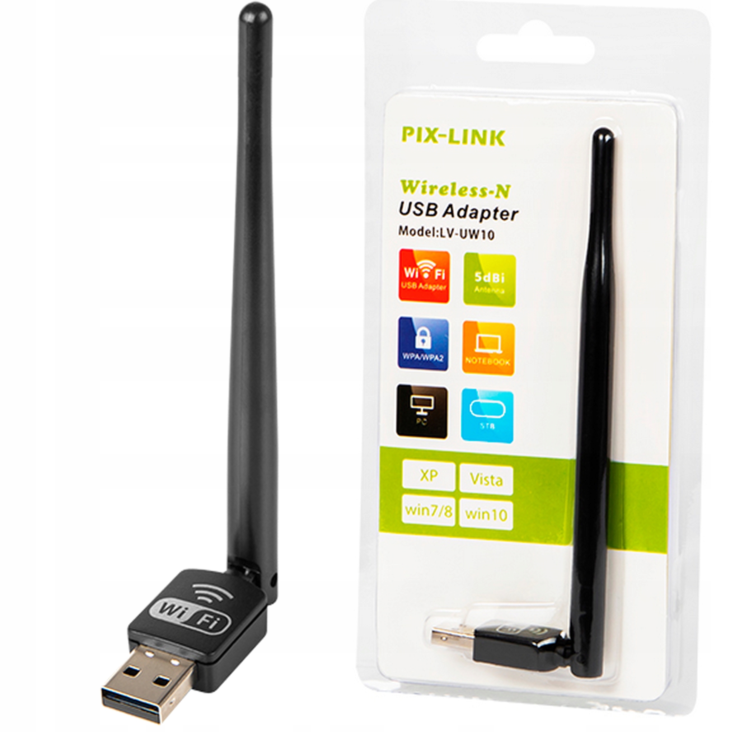 Karta sieciowa Wi-Fi z wtykiem USB oraz anteną umożliwiająca połączenie laptopa lub komputera stacjonarnego z bezprzewodową siecią. Produkt zapewnia szybkie i stabilne połączenie, a dzięki swoim niewielkim wymiarom nie zajmuje dużo przestrzeni i jest łatwy w przenoszeniu.