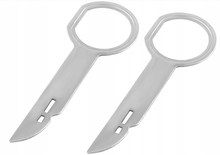 Klucze niezbędne są do odinstalowania fabrycznego radioodbiornika w określonych autach. Fabryczne radio trzymane jest w półkieszeni przez specjalne zatrzaski, które znajdują się z boku radioodbiornika.