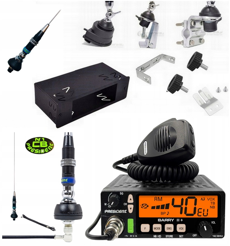 CB Radio President Barry II Plus posiada wbudowaną przetwornicę napięcia która sprawia że radioodbiornik podłączysz bez żadnego problemu zarówno w samochodzie osobowym , dostawczym z napięciem 12V jak i w pojazdach ciężarowych lub innych z fabryczną instalacją elektryczną o napięciu 24V.