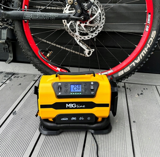 - Skorzystaj z kompresora aby dobić ciśnienie do opony roweru