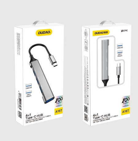 Dudao HUB 4w1 USB-C – 4x USB-A (3 x USB2.0 / USB3.0) 6,3cm czarny (A16T)