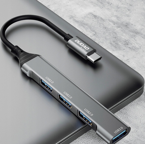 Dudao HUB 4w1 USB-C – 4x USB-A (3 x USB2.0 / USB3.0) 6,3cm czarny (A16T)