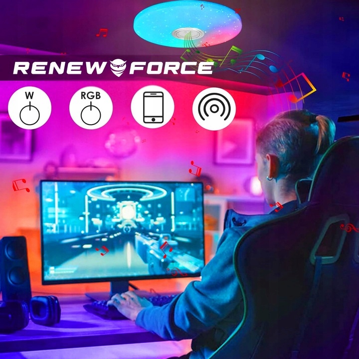 ⭐PLAFON LED RGB Z GŁOŚNIKIEM BLUETOOTH 60W RENEW FORCE® – ŚWIATŁO, MUZYKA I ATMOSFERA W JEDNYM!⭐