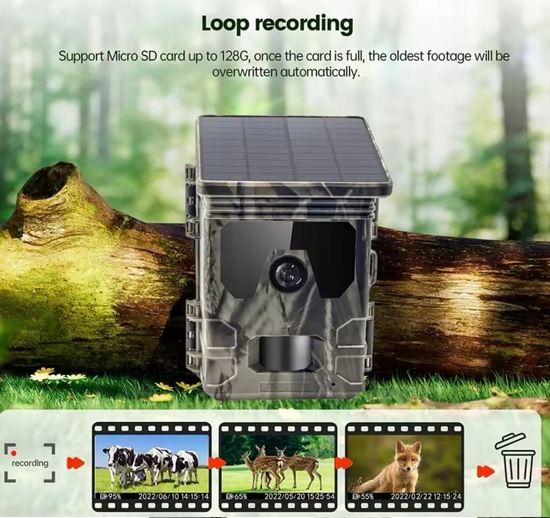 LEŚNA KAMERA FOTOPUŁAPKA PANEL SŁONECZNY IP65 120° FULL HD PODCZERWIEŃ
