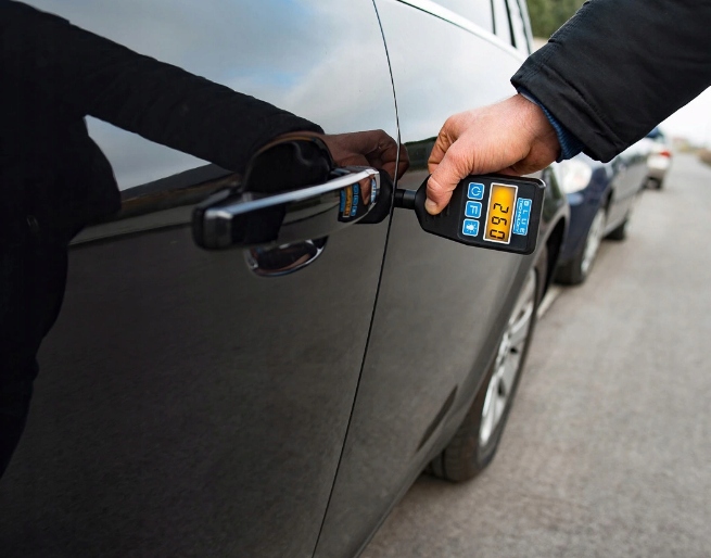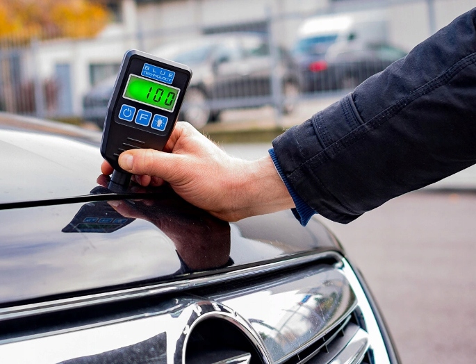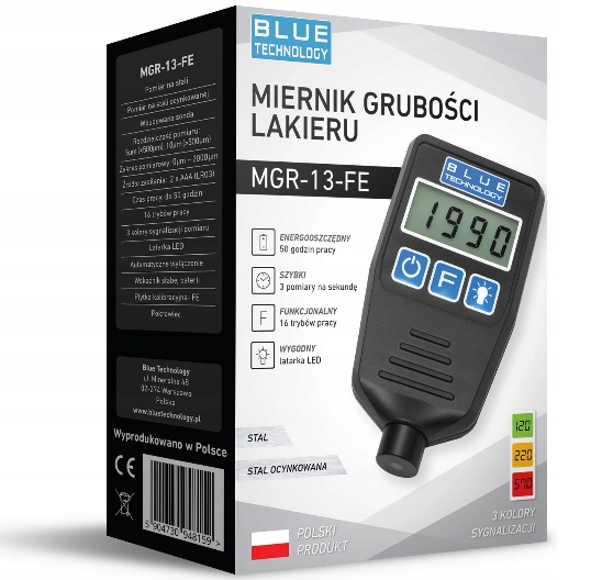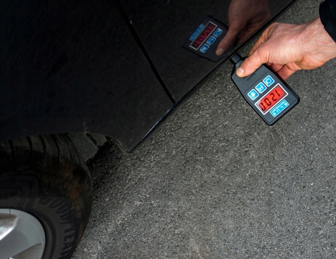 - zielone podświetlenie wyświetlacza oraz krótki sygnał dźwiękowy – miernik sugeruje, że lakier jest oryginalny