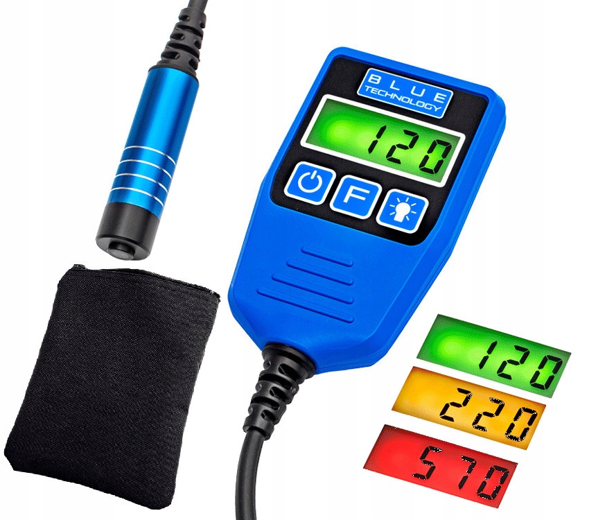 Miernik grubości lakieru Blue Technology DX-13-S-AL to absolutna nowość na polskim rynku umożliwiająca szybkie i precyzyjne badanie grubości powłoki lakierniczej samochodu. Urządzenie idealnie sprawdzi się podczas kupna samochodu używanego, jak i nowego prosto z salonu. Miernik pozwala bez problemu dokonać pomiaru na krzywiznach, stali, stali ocynkowanej, aluminium, a także na słupkach, progach i wnękach. Jego zwiększony, szeroki zakres pomiarowy pomoże w dokładnym i precyzyjnym poznaniu wyniku.