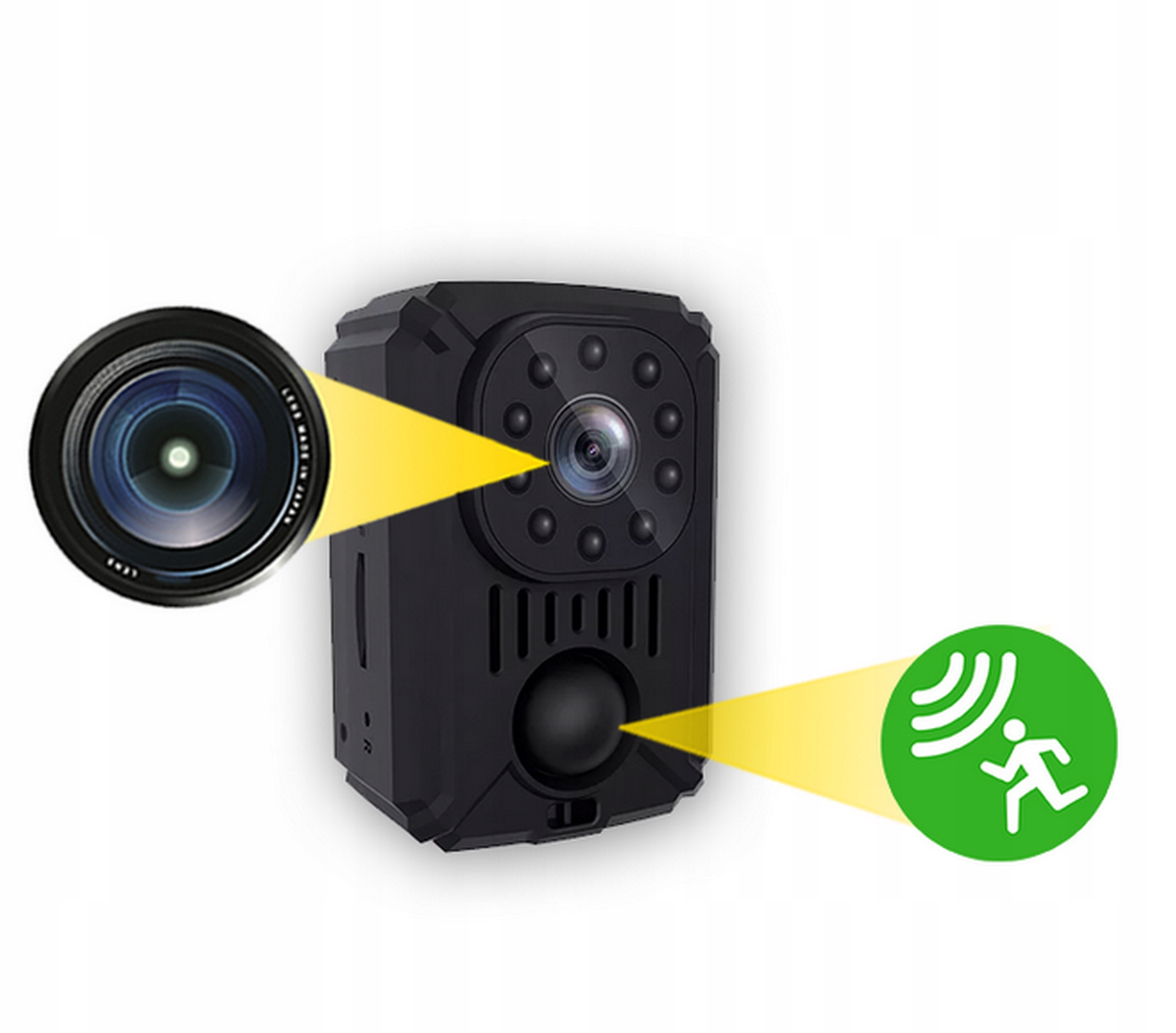 Mini kamera  z czujnikiem ruchu, trybem nocnym, rejestruje nagrania na kartę pamięci do 128GB w rozdzielczości Full HD 1080P.