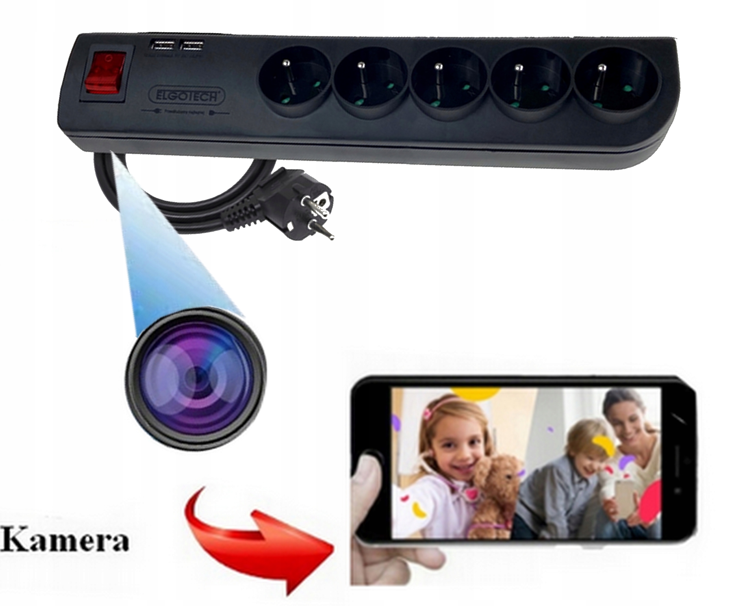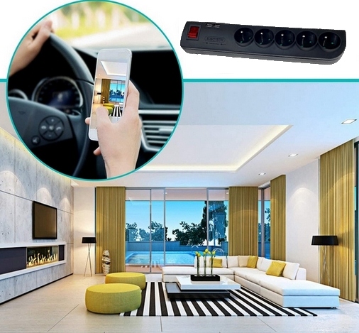 MINI KAMERA WIFI W LISTWIE ZASILAJĄCEJ 5X GNIAZDO SIECIOWE 2XUSB