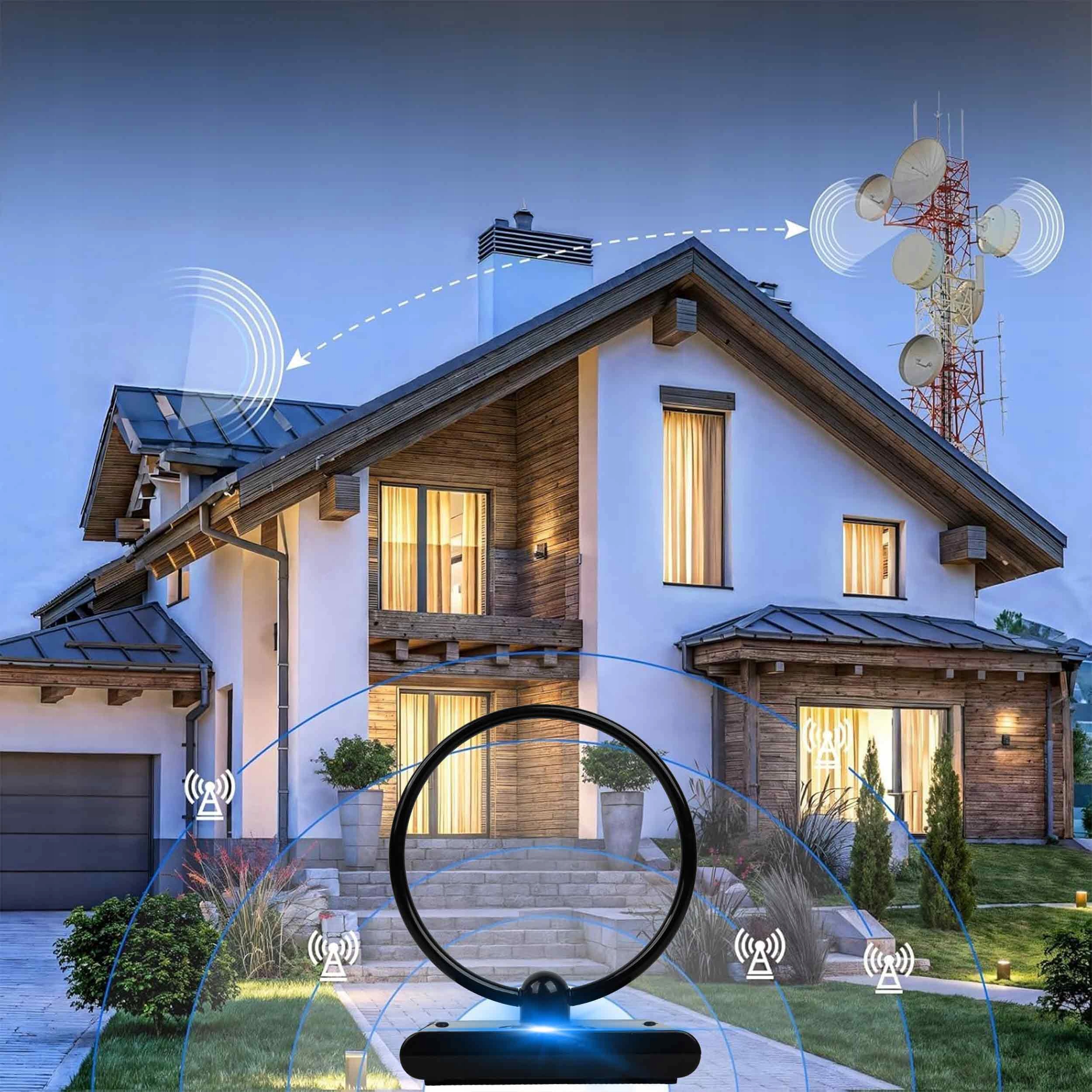 ✅ Regulacja wzmacniacza – dostosuj moc wzmacniacza poprzez pokrętło znajdujące się w podstawce anteny!