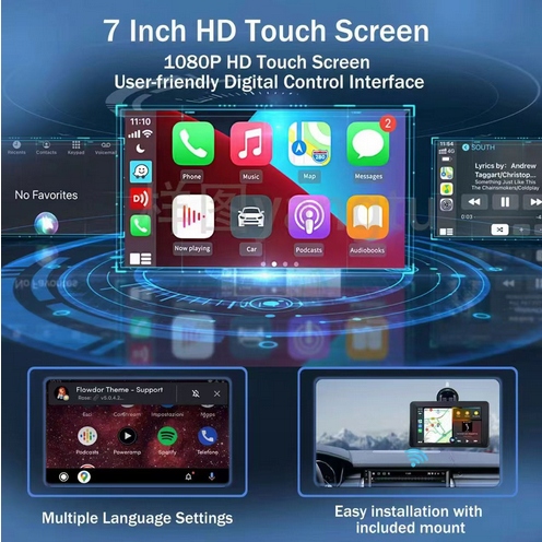 - Dzięki bezprzewodowemu CarPlay i Android Auto możesz łatwo podłączyć swój smartfon i korzystać z ulubionych aplikacji, a transmiter FM umożliwia przesyłanie dźwięku bezpośrednio na radio samochodowe.