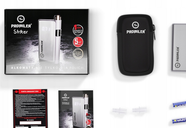 - Alkomat Promiler Striker – świeżo skalibrowany i gotowy do użycia
