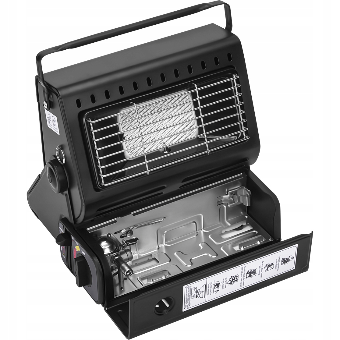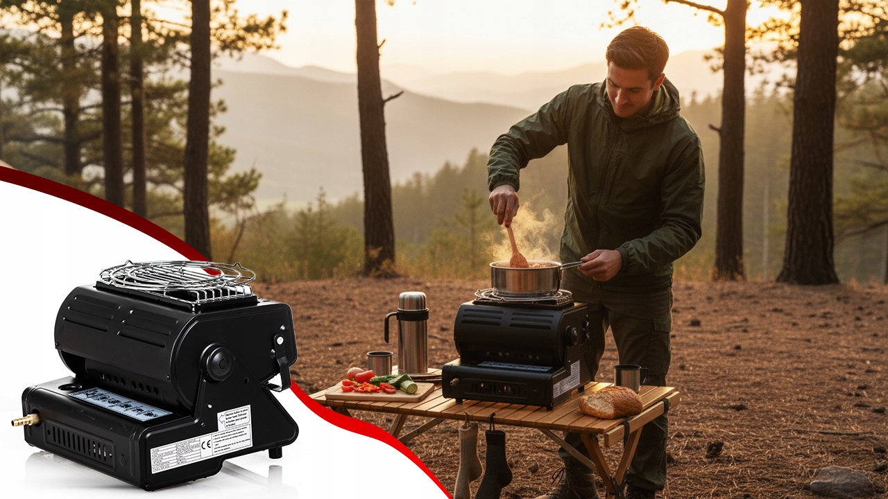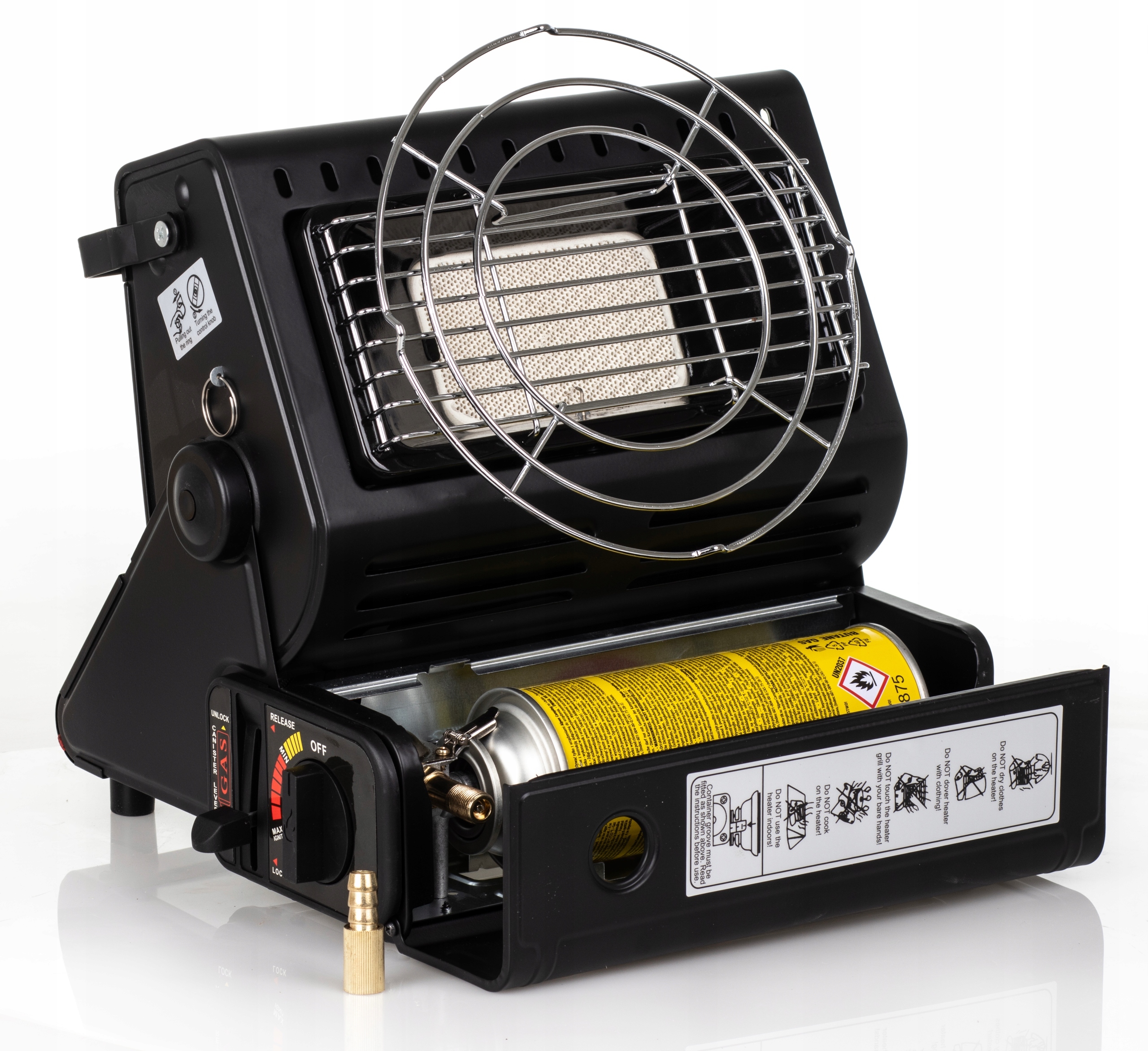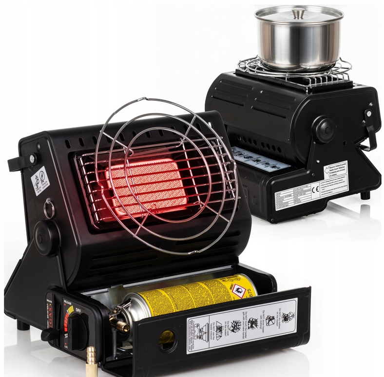 Funkcjonalność 2w1 (Kuchenka i Grzejnik): Łatwa transformacja z promiennika gazowego (do szybkiego dogrzewania małych pomieszczeń) na kuchenkę turystyczną (do gotowania i podgrzewania posiłków).