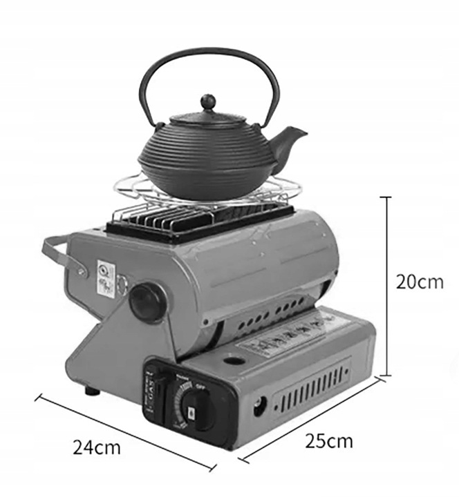 • Funkcje: Ogrzewanie (promiennik ceramiczny) / Gotowanie (kuchenka daotakowy ruszt)