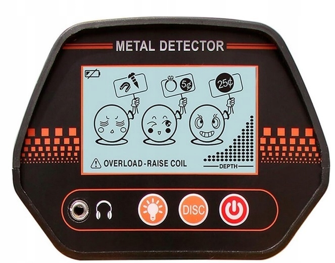 - Informuje o znalezieniu metalu za pomocą sygnału dźwiękowego oraz wizualnie na wyświetlaczu LCD. Wyświetlacz może pokazywać prawdopodobny rodzaj metalu, głębokość oraz wielkość przedmiotu.