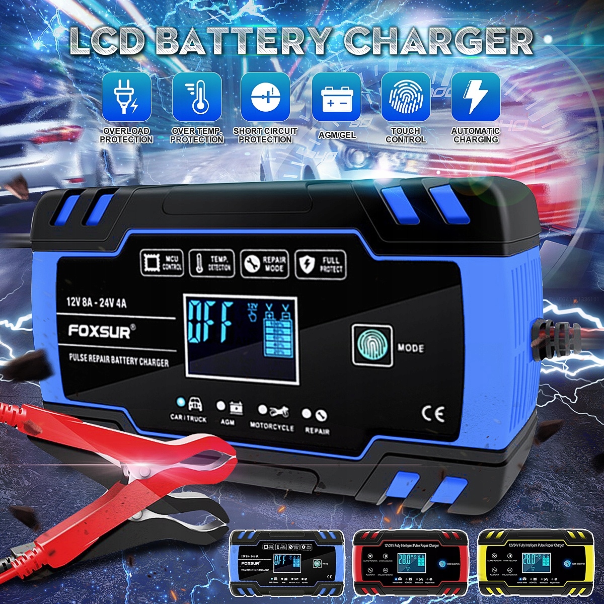 ✨Kompaktowa, lekka i wydajna ładowarka 12V 6A z funkcją naprawy i trybem automatycznym dla różnych typów akumulatorów✨