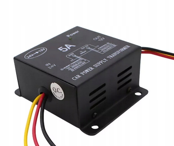 Przetwornica do zasilania urządzeń elektrycznych, (radia samochodowe i stacje multimedialne) i innych akcesoriów samochodowych wymagających zmiany napięcia z 24V z na 12V. Obudowa wykonana z aluminium gwarantuje wysoką jakość oraz wytrzymałość. Dzięki naszej przetwornicy podłączysz w swojej ciężarówce sprzęty znane z aut osobowych 12V np. swoją ulubioną nawigację, ładowarkę do telefonu itp.